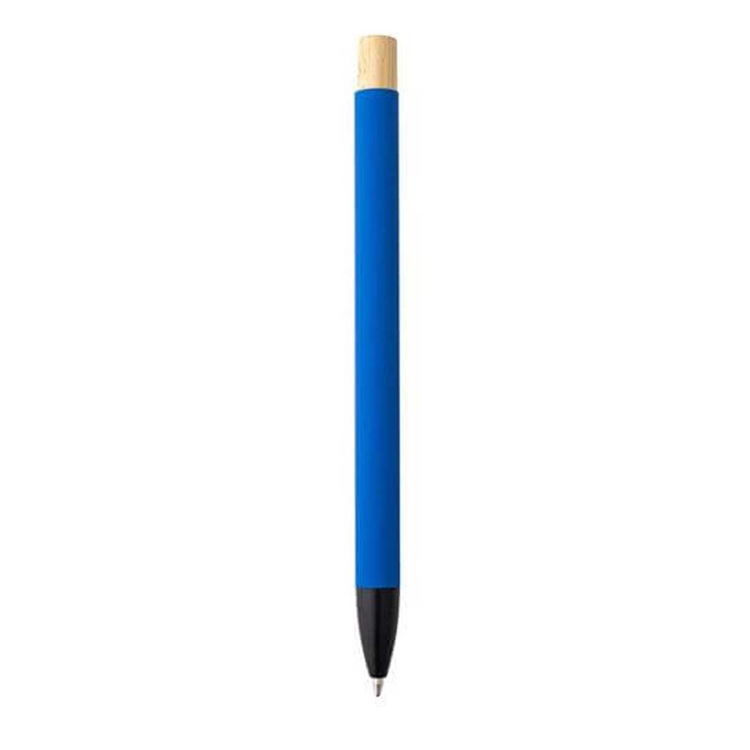 A push-action ballpen designed with a sleek aluminum body and a soft rubber-finish barrel for a comfortable grip. Features a smooth 1.0mm refill with blue ink