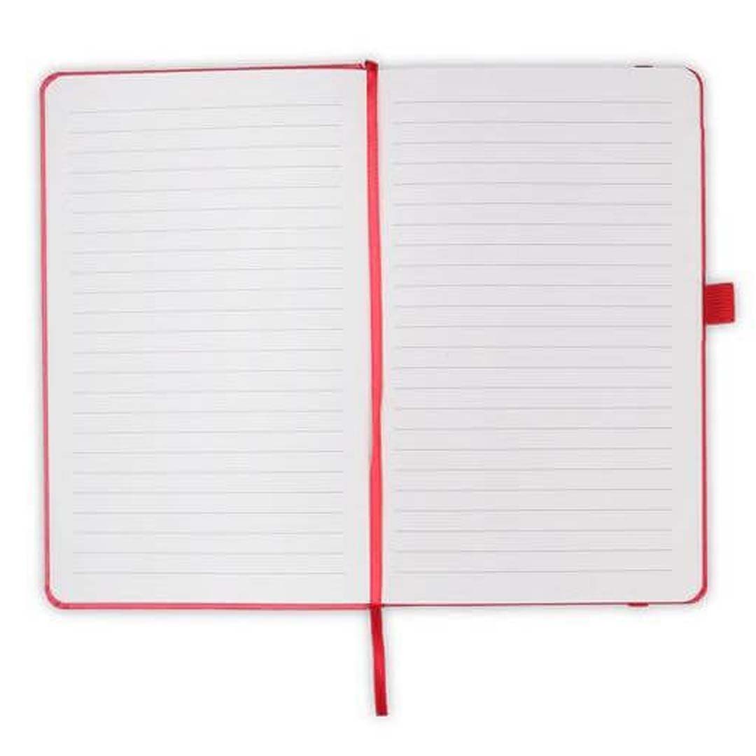 This expanded A5 hardcover ruled notebook features a durable paperback hardcover, a pen holder, elastic band, endpaper pocket and ribbon bookmark. Consists of 288 inner pages of cream-white 80g paper, and thereby, Baron is a comparatively long-lasting and expanded notebook in terms of page count. Packed in a color matched paper sleeve.